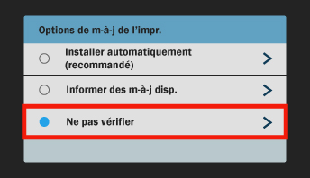 - Cliquez sur ‘Options de mise à jour de l'imprimante’.