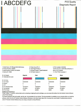 - Appuyez sur Colour Start. La feuille de test de qualité d'impression est imprimée.